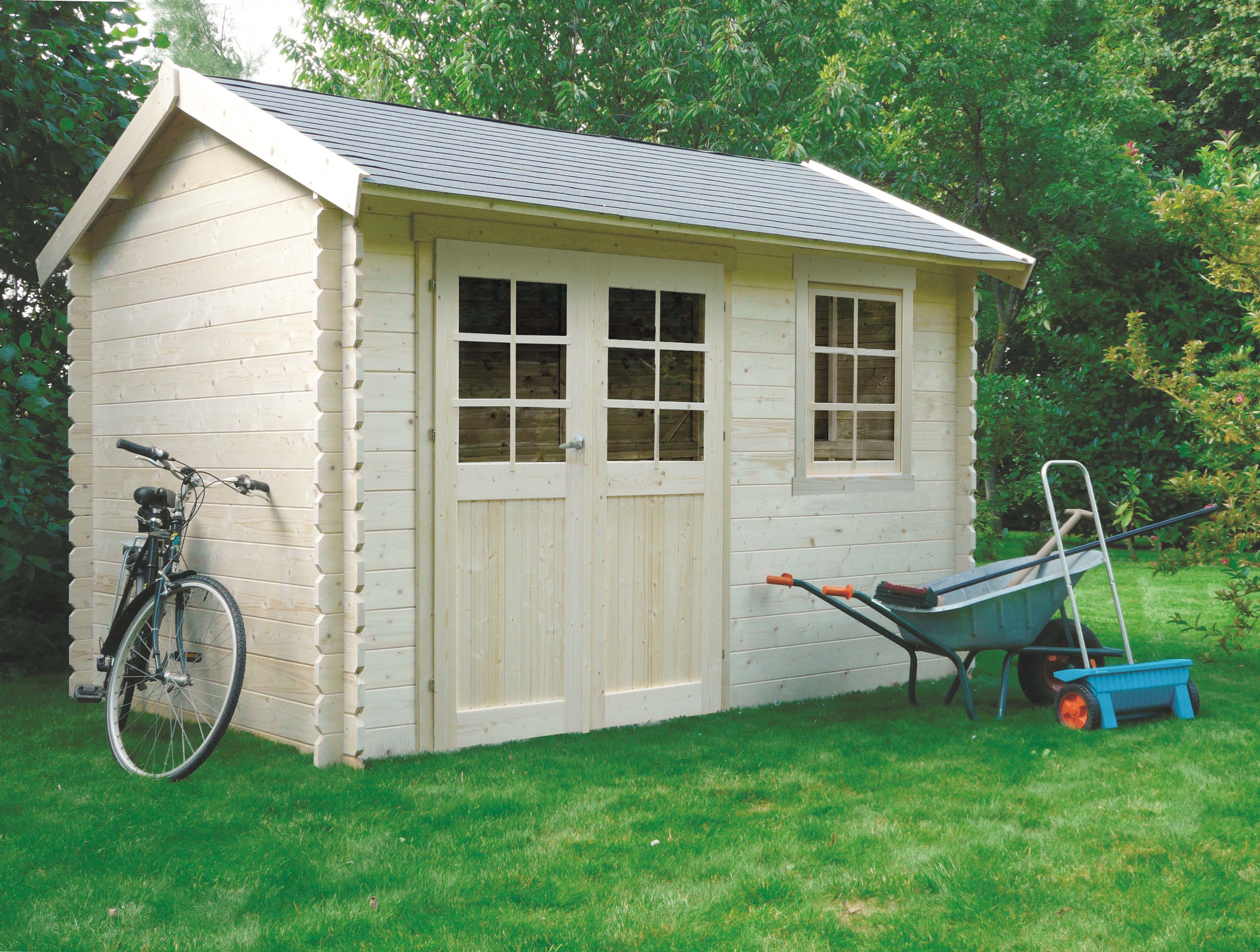 Voorzien van een dak met houten planken van 16mm en van een zwarte roofing.