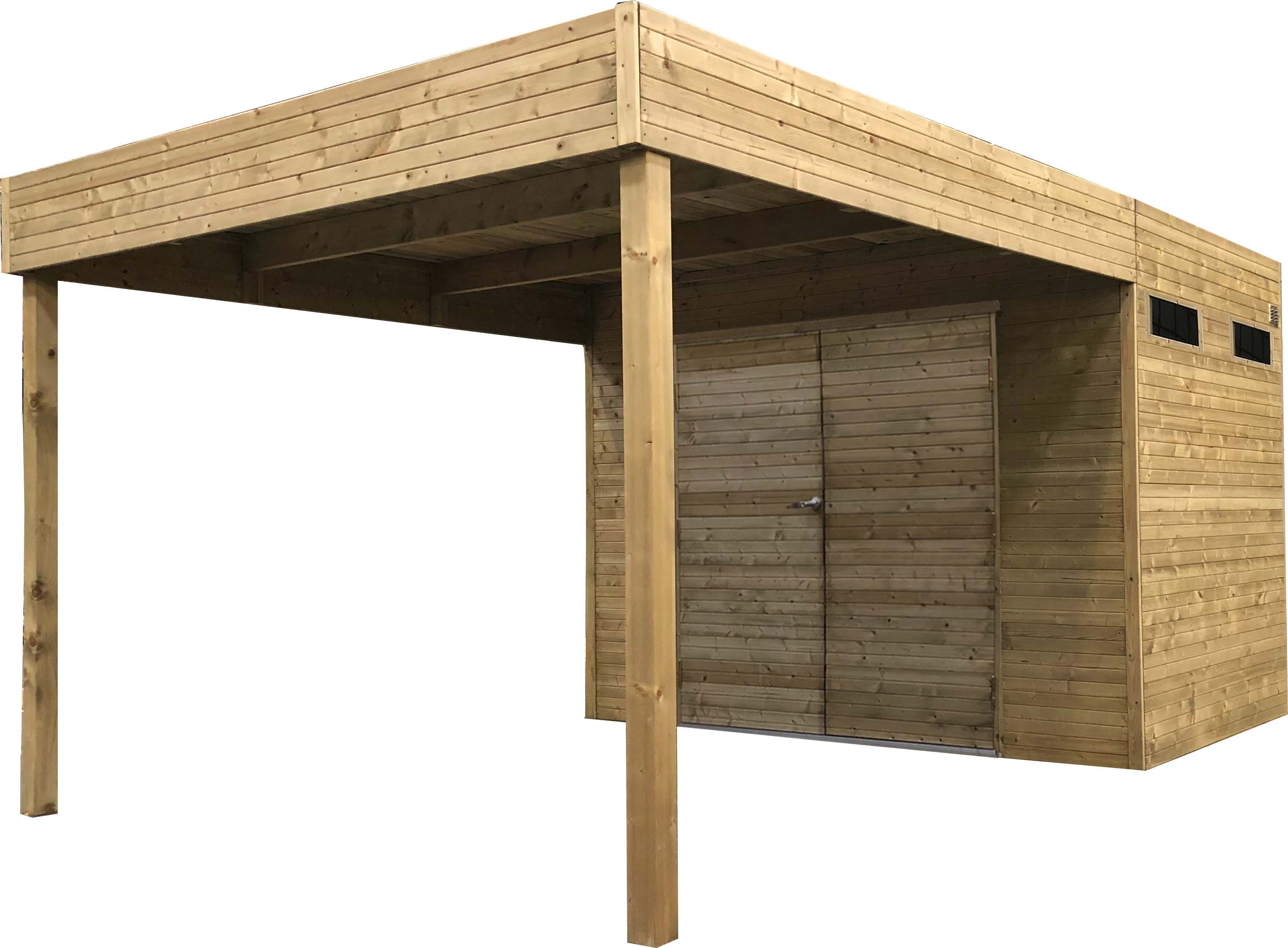 Voorzien van een dak met houten planken van 16mm en van een EPDM.