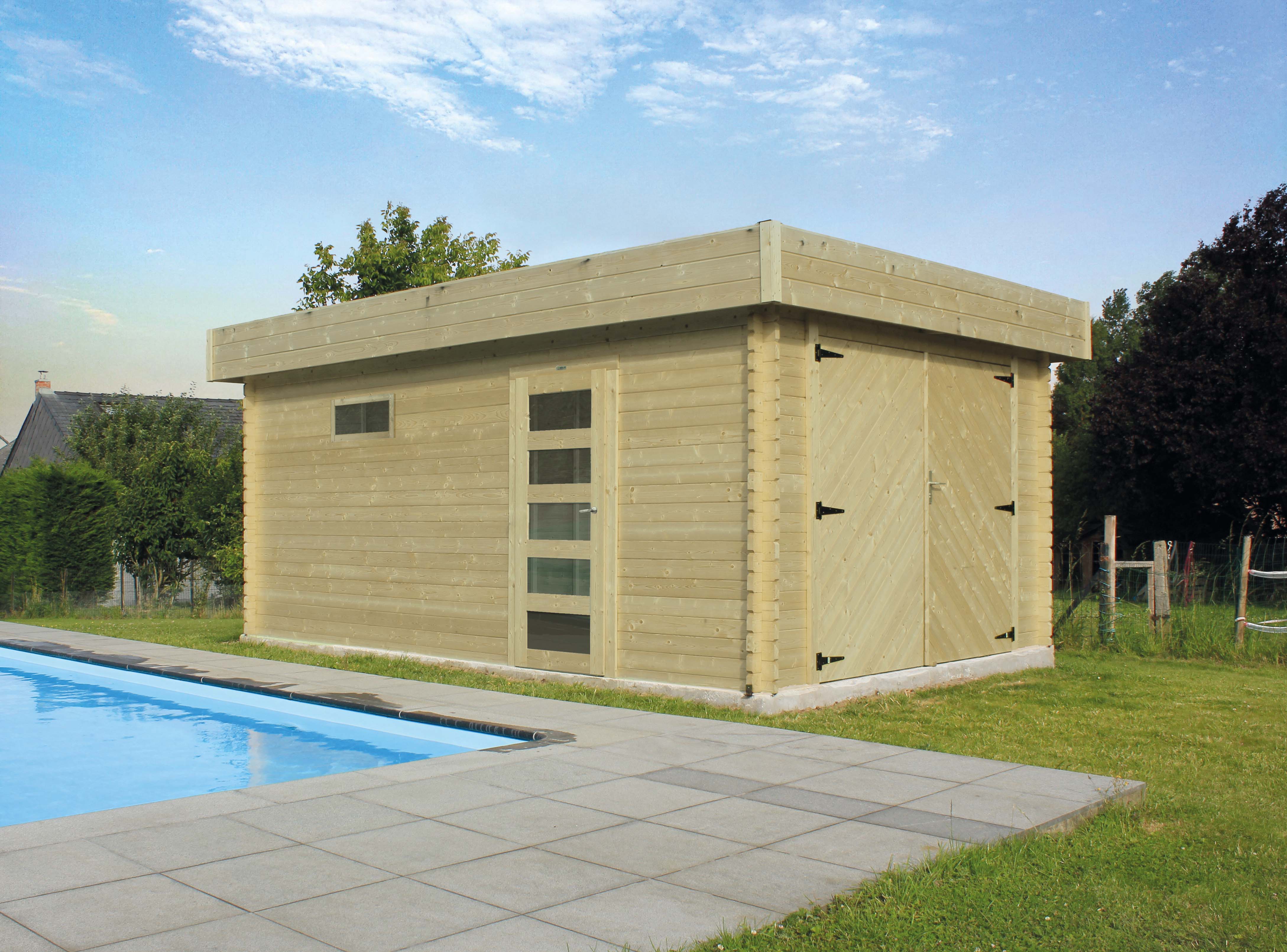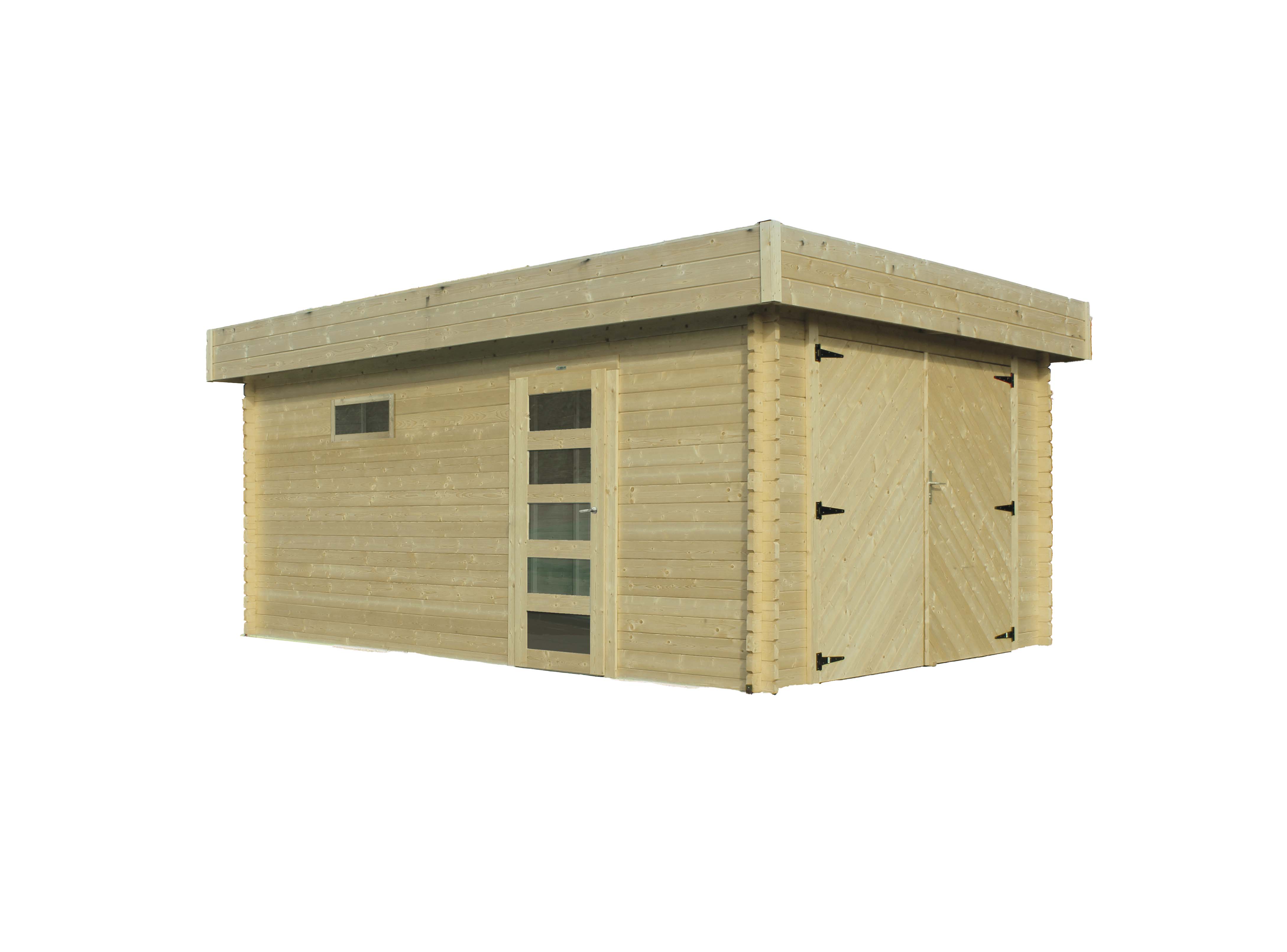 Voorzien van een dak met houten planken van 16mm en van een zwarte roofing.